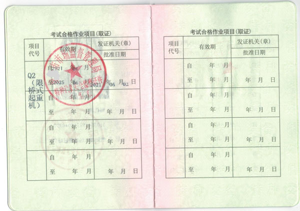 叉車證N1,電梯維修T,特種安全設備管理A,起重機指揮R1,Q2起重司機(限門座式起重機),Q2起重司機(限橋式起重機),Q2起重司機(限門式起重機),Q2起重司機(限纜索式起重機),Q2起重司機(限塔式起重機),Q2起重司機(限流動式起重機),Q2起重司機(限升降機),觀光和觀光列出司機,鍋爐壓力容器壓力管道管理A,電梯管理A,起重機械管理A,場(廠)內(nèi)專用機動車輛管理A,工業(yè)鍋爐司爐G1,電站鍋爐司爐G2,鍋爐水處理G3,快開門式壓力容器操作R1,移動式壓力容器充裝R2,
