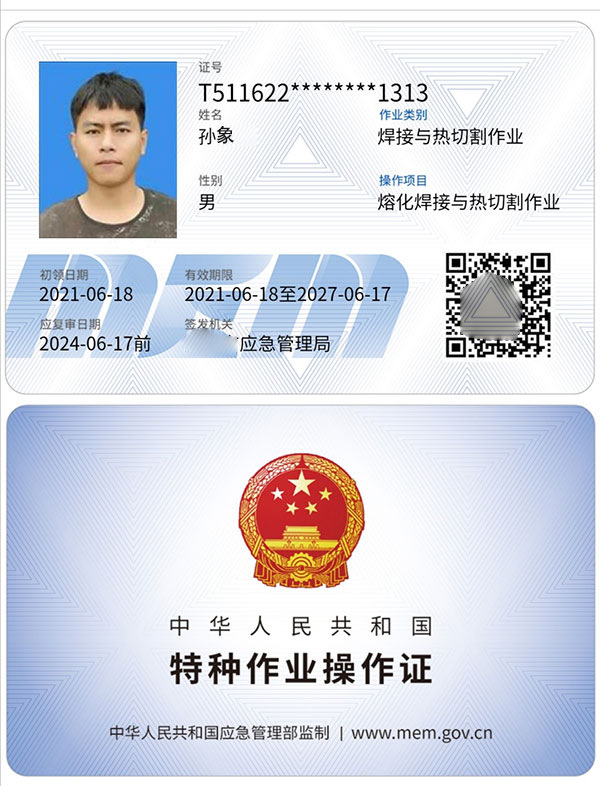 《特種作業證書展示》
